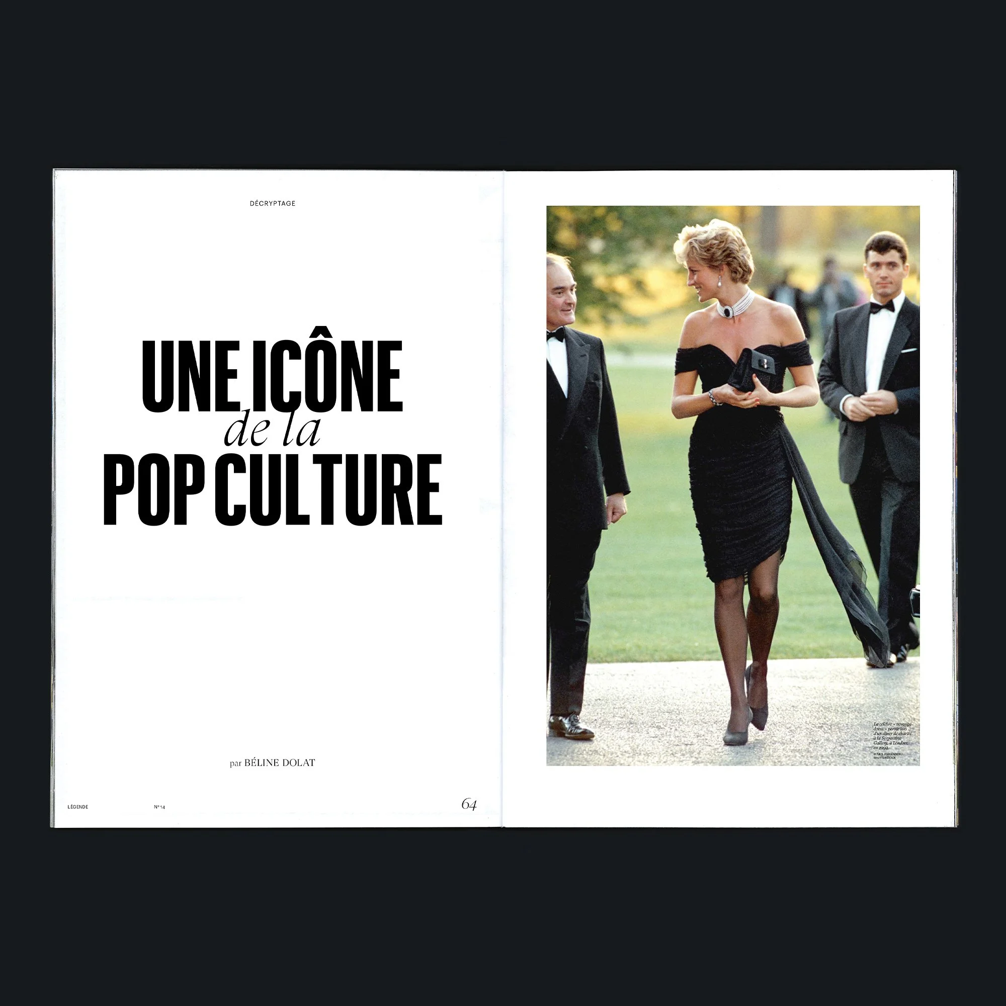 Design graphique, mise en page et direction artistique pour le magazine Légende.Numéro sur Lady Diana.